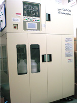 いくら他の所でクリーンな操作を行っていても、粉末透析溶剤を投入するときに細菌が入り込んでいては意味がありません。そこで当院では日機装社製の半閉鎖式透析液自動溶解装置DAD-30を導入しました。