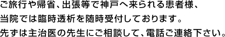 > 診療内容 > 人工外科外来 > 臨時透析のご案内